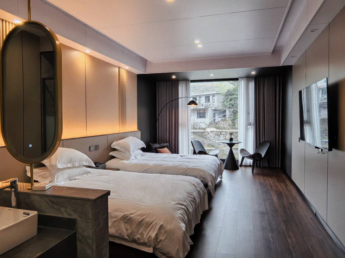房间的窗外就是一条小溪流,趴在窗台上看看窗外的风景太赞了👍👍住在这里像回家一样。