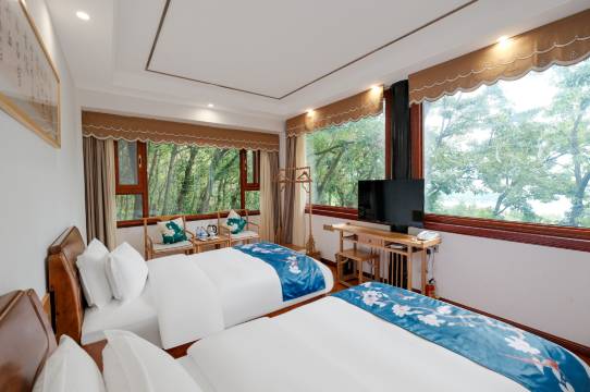 书院位于西昌市邛海泸山风景区内,建筑全是两层木结构,雕梁画栋。【高铁站】距离西昌高铁站车程30分钟。【飞机场】距离西昌青山机场车程35分钟。【光前网络】全区域wifi覆盖,百兆光纤网络【酒店硬件】客房均为实木家具,数字电视,品牌卫浴。【周边景点】螺髻山九十九里温泉、卫星发射基地。【服务承诺】客房选用正规布草洗涤公司,布草一客一换,客用茶杯、口杯、毛巾、浴巾均高温清洁。 本店还对外开放:看书、抄经、品茶、禅修、诵经、念佛、康养素食等(另有能容纳60人左右的会议室和禅修室)。 本店可观看:西昌景(泸山天南胜境平台—可观看日出.邛海全景)、光福寺九龙汉柏、飞梁殿、光福寺樱花等。