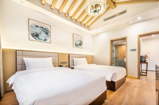 酒店服务一级棒,特别喜欢,小朋友自己还整理了床铺并给酒店写了五星好评。特别是温泉别墅的管家“培培和佳佳”,温柔又善解人意,还送了彭州特产萝卜干。下次来一定邀上朋友一起来住。