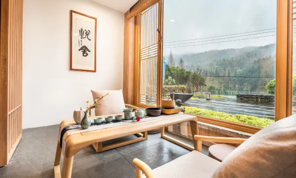 安逸悦舍温泉别墅依山(龙门山脉)傍水(湔江支流花溪)而建,夏天在花溪踩水,冬天龙门山赏雪、酒店私汤,户外泡温泉。