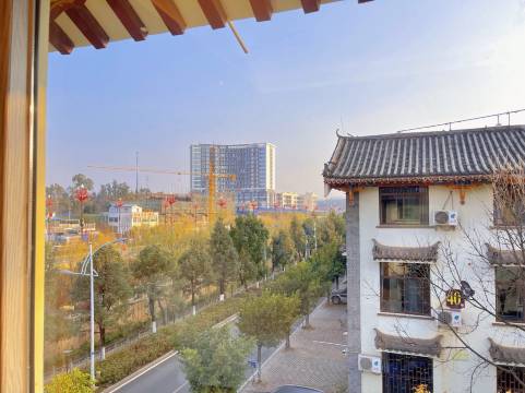 在一个仿古建筑群边上,周边众多火锅店,吃菌不愁,老板和前台服务态度很好,房间整洁干净,比较精致,房间偏小点,窗外就是小区通道,绿化优良。