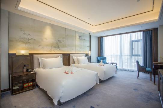 酒店设有雅致舒适的各类客房,均采用酒店纺织品80支棉康乃馨优质鹅绒被,以及智能客控系统、智能马桶,部分客房配有戴森吹风机、NESPRESSO胶囊咖啡机、空气净化器、加湿器。酒店建筑高度100米,视野极佳,透过客房全景落地窗,可俯瞰扬州全城历史文化风貌。