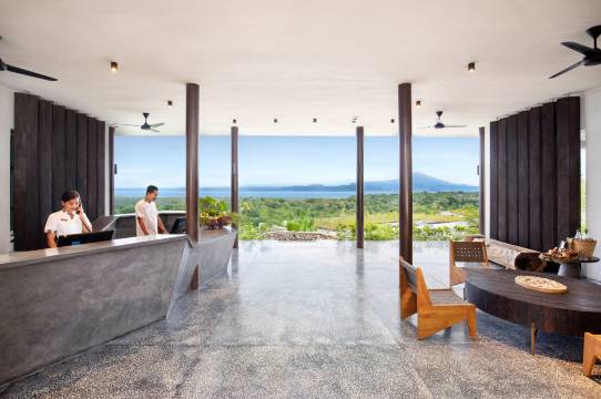 这是佩尼达岛上的野奢酒店,岛上的路很烂,中国偏远农村现在都不容易找到这么差的路了,车子走土路开到酒店大堂门口时那里啥都没有,连一栋像样的建筑都没有,一开始真吓了我一跳,结果从一个小台阶向下走进大堂,豁然开朗,酒店在山上沿山而建,山景无敌,天气好时可以清楚看到巴厘岛上的阿贡火山。每栋建筑都藏在山坡上,从山顶向下几乎看不到,一派野趣。房间内设施非常好且齐全、干净。住宿体验很好,非常安静。但酒店公共设施比较少,公共泳池又小又浅,健身房比较简陋。酒店只有一间餐厅,早餐比较一般,但正餐的水准还是可以的。出行不方便,住在酒店只能在酒店吃,出门要么提前包车,要么请酒店帮忙叫车,但是整个岛差不多都是这样,出去也没有什么像样的吃饭地方,相比之下酒店的餐厅很好了。