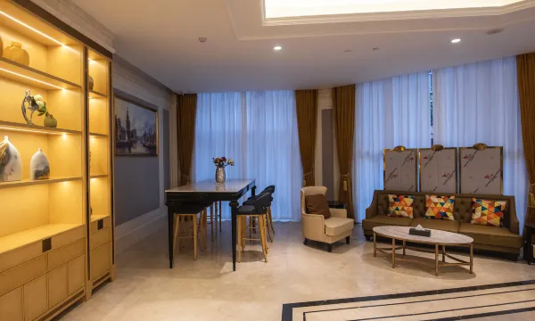 大厅宽敞气派,配有两种饮品及糖果,在大厅的长形木质茶桌上办公处理邮件很方便,适合商务。前台服务员很友好,我们入住很晚,为我们升级了套房,房间十分宽大,性价比很高的酒店,下次还来入住。