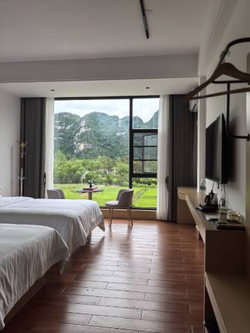 出来名仕玩两天,选了这美景客栈,位置刚好在名仕园区的中间地址,去景区两边走走河边都很方便。酒店是新装修,实施好,房间大窗户就对着田边,感觉挺棒