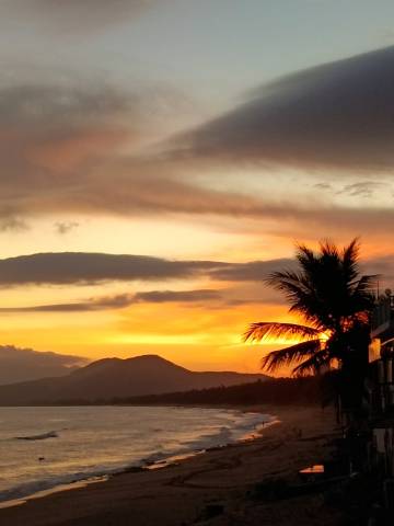 在小镇里面的自建房,走200米到海边,街上吃得很多,消费高,到处是椰子鸡。