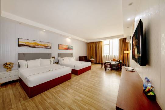 房间很大干净卫生不错,没很大的噪音,不影响大人小孩休息,床也挺舒服,前台小姐姐服务很好,停车都会安排位置,价格合理