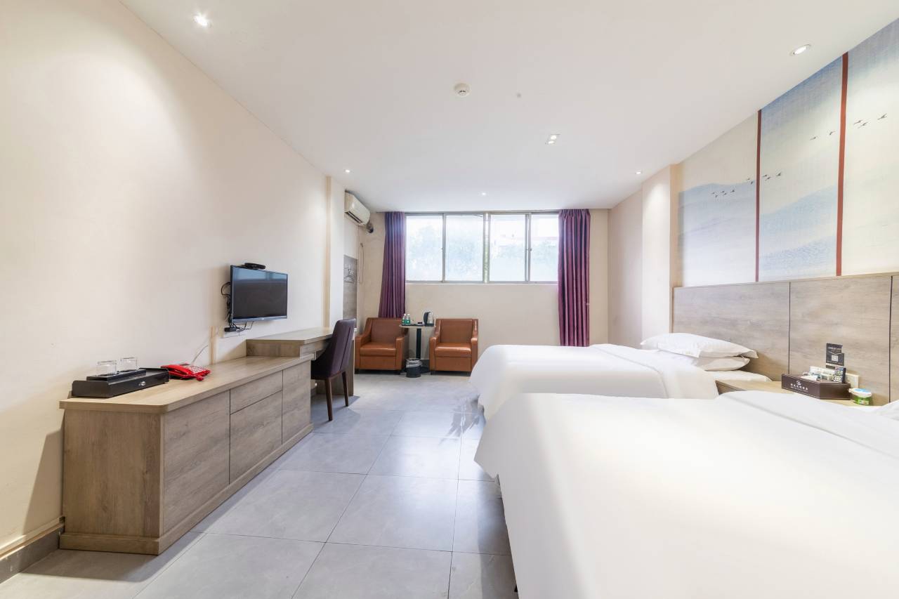 房间很满意,房间干净卫生整洁,很好的一次体验。房间设施齐全,有停车场,服务态度挺好,前台服务热情。周边环境很好,有商场,购物很方便,小吃街也很近。值得推荐,价格经济实惠,物超所值!
