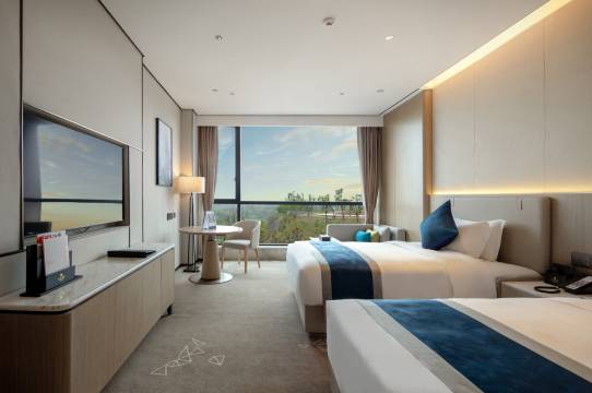 房间干净整洁,设施齐全好用,床品舒适睡得很安稳。前台的服务员小金和小童两位服务热情周到,办理入住和退房都很快捷。房间安排的楼层高,视野开阔,我和我朋友一起来的,房间都给我们安排在一起了,很贴心,酒店位置便利,出行开车会更方便。整体环境安静,性价比很高,入住体验很满意,下次来还会选择这里,推荐给大家。