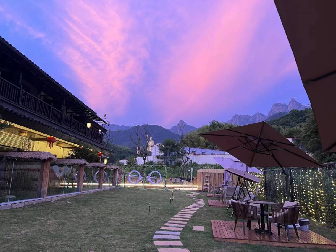 地理位置绝佳,前台的小姐姐服务很周到。热心帮助联系导游,准备烧烤和围炉煮茶。亲子间更适合家庭出游需求。房间的挑高,非常的宽敞,自带一个小露台。后院儿就是烧烤帐篷和秋千,还有滑梯。清晨睁开眼睛,走出房间就可以看到地藏王99m高的鎏金佛像。