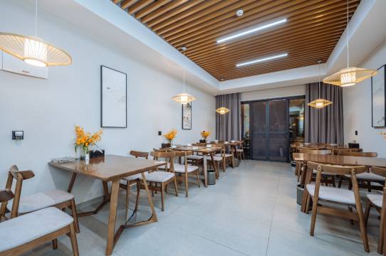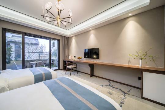 房间宽敞,干净整洁,有语音控制智能系统,还有一个小的户外私密隔断空间。前台服务热情周到,订房后通过微信发来导航诀窍,顺利到达酒店。晚餐时间跟着我们的需求。第二天因为有交通管制,必须6点半出发,早餐也配合我们时间。总体非常满意。
