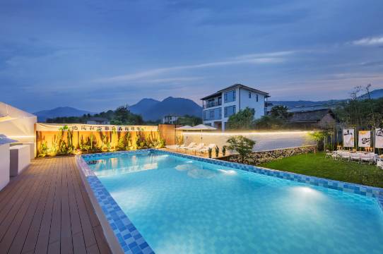民宿占地面积1200平方,位于莫干山风情小镇庾村景区内,民宿以现代北欧ins风设计了不同的房间,床品舒适,设计简约,大阳台好风景。娱乐设有网红大泳池、包厢式KTV、儿童游乐设施,棋牌室、影音投影、游戏机、花园、餐厅、烤全羊BBQ、大露台、独立厨房等,活动空间很大,隐私性很好。