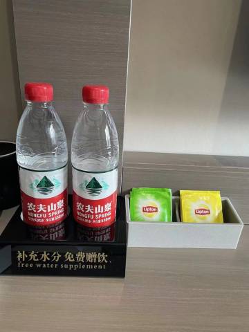 房间挺干净的,配备一次性用品,矿泉水,毛巾都是一次性的,地暖,我们入住的时间赶上升温,房间太热了,。