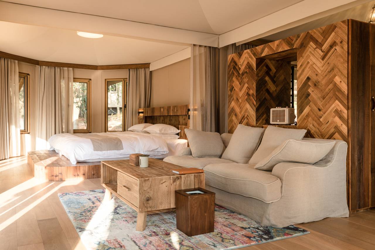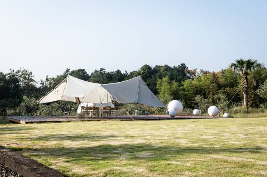 10个帐篷隐藏在山坡上,以北斗之形观庄园晨曦日落,演绎庄园栖息生活。