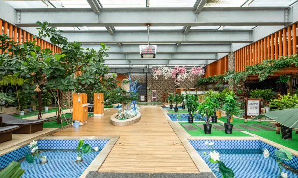 饭店占地100余亩,建筑面积8万平米,以法国勃艮第庄园为建筑风格,是集餐饮、住宿、会议、水疗SPA等为一体的综合性酒店。