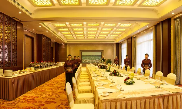 酒店全体员工始终坚持以“宾客至先、服务至上”为宗旨,深入践行“诚信、专业、创新、共赢”的核心价值观,全心全意用热情周到、体贴入微的服务品质,为宾客打造温馨舒适的家外之家。
