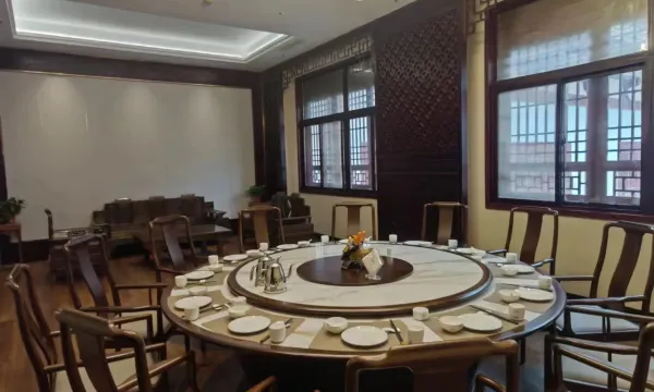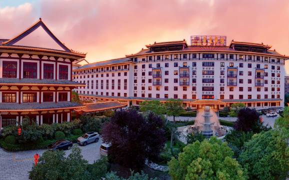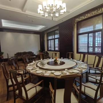半夜进入宾馆,路上大车很多,对宾馆期望值直接降低。进到宾馆停车场,朋友就开始了挑剔,在前台办理入住时,工作人员处理很快。看着大厅陈旧的门,我也只能硬着头皮入住了。打开房间门,房间整洁干净古香古色,床垫舒适,房间隔音效果很好。第二天拉开窗帘,庭院绿植茂盛、繁花盛开。早餐喝到了糊辣汤,菜品挺丰富。早上还遇到几位新人在此办婚礼。服务人员都是面带微笑,尤其有专人引导去餐厅吃饭。必须点赞