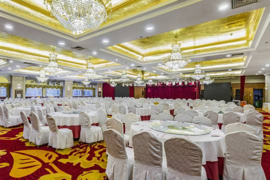 餐厅可同时容纳1200人就餐,汇聚新派粤菜、淮扬菜、豫菜和淇河文化菜,主体鲜明的宴会设计,彰显文化底蕴,安全、健康的绿色食品让您尽享中华美食。