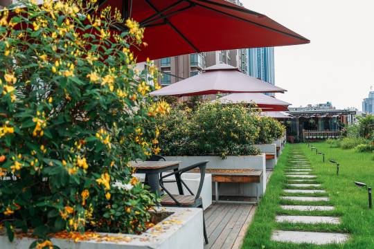 这是座包含屋顶花园和花园酒店的综合主题酒店,其中花园酒店是以loft+宜家风的混搭装饰风格为主
