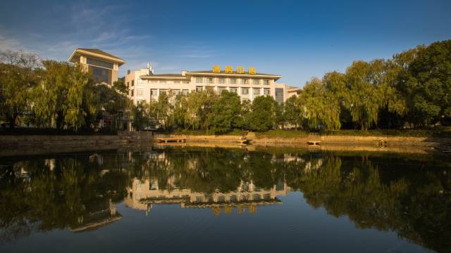 武汉荷田大酒店临汤逊湖而建,风光秀丽,园区绿植成荫。