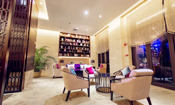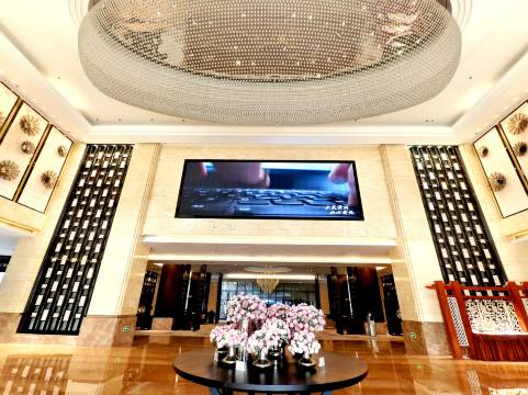 酒店客房两百余间,能满足各种政务、商务高端接待的需求。走进大堂,就仿佛进入了一个富丽堂皇的宫殿。眼前展现的是一个风格奢华的阔大空间,华丽的诺亚方舟造型的水晶吊灯,每个角度都折射出如梦似幻斑斓彩光。休息区、大堂吧华美的欧式桌椅、小巧精致的吧台,处处散发着贵族气息。
