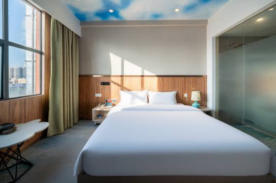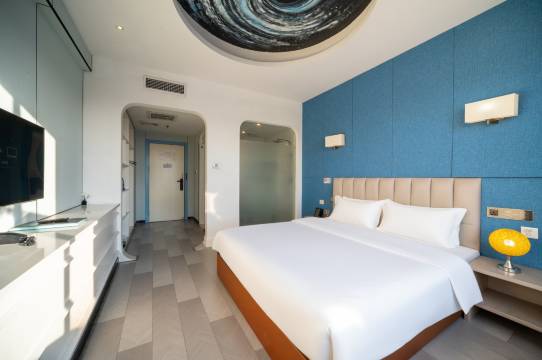酒店位置不错,出门很多吃饭的地方,不远就是商业广场,夜市氛围很好,周边都挺便利。酒店环境也还不错星空主题房间,用品齐全。