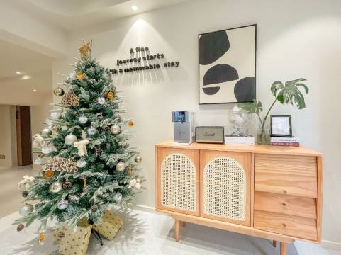 民宿由专业室内设计师设计,秉承“Less is more”的设计理念。通过平衡设计的调性、光的用度、色彩的分配、素材原料等,展现了一个奶油治愈,温馨柔和,清新素雅的居住空间。全屋均使用环保材料,喜临门床垫,品牌家居,新型壁挂马桶,让每一位来小筑的宾客都能在家般舒适。让您的每次出行都不将就。