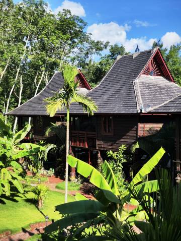 版纳行程中安排了三天傣族园内的吊脚楼,订房时就是被网上其他住客的照片和评价吸引了,果断订了三晚,带着老人和孩子出行这里真是个不错的选择,首先位置优越,就在傣族园景区内,并且离主要打卡地全部都步行就可以到达,完全不需要电瓶车,其次环境优美,有啥说啥虽然是比较主流的景区但是进入景区不免还是有些乱哄哄嘈杂的感觉,但是一打开酒店大门就感觉世外桃源一般,店里被老板和老板娘打理的井井有条,房间里也是一应俱全,早餐丰盛,总之不想吃苦又想体验一下吊脚楼这里真是个不二之选。