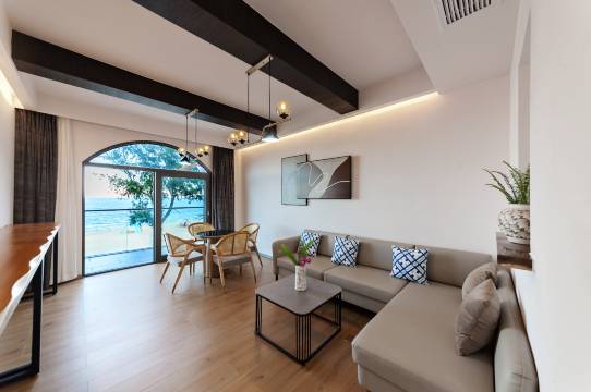 太漂亮了,躺在床上就可以看日出,楼下就是沙滩,园林有躺椅,喝茶聊天太惬意了,门口的沙滩退潮了带孩子去赶海,体验感满满的!