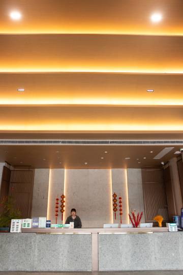 在外工作几年都没有回老家来了。回来前在网上订好的房间,看了网上好像是城里唯一的一个连锁酒店本来也准备住一晚上就回老家去了的所以没有抱太大的希望,但是到了酒店之后从前台工作人员的专业度以及良好的服务态度让我对酒店有了新的认识,酒店整体装修简约而不简单,环境清净,卫生干净!保洁阿姨热情周到的服务给我留下了深刻的印象,真的有一种回家的感觉。