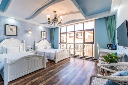 民宿位置不错,后面就是公交站,从码头坐302过来高场湾下10来分钟就到了,4楼有个大天台,全海景,离海边也很近几分钟就到,房间非常漂亮,地中海风格的装修很应景,房间里的配套也很齐全,老板人也很好,有问必答,非常满意!
