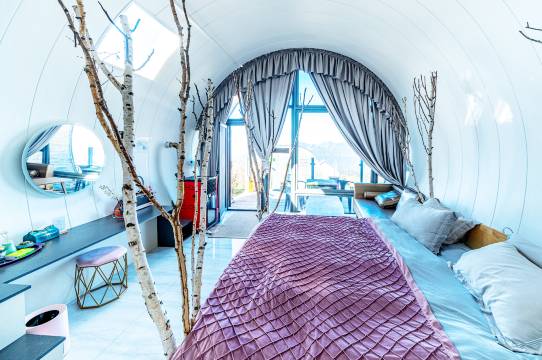 欧雯慕岚位于轿顶山海拔3000米的云海之上,坐落于万亩高山草甸之间,意为“云海之上,集美之地”,特殊的地理条件使得这里的云海景观,全年占比是国内云海天气几率**的地方之一。在客房床上就可以观赏贡嘎主峰,日照金山,和壮观的云海。欧雯慕岚引来海拔3550米的“富锶”山泉水,可以在客房里煮茶品茗,客房采用真火壁炉,野趣十足。即使在最冷的冬季也可以让屋内的温度保持在20度以上。独栋木屋保证了合理的间距,使得客人之间互不打扰,酒店客房还配备了卡拉OK可以借用,带上你喜欢的人,在星空云海下尽情放声高歌吧