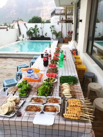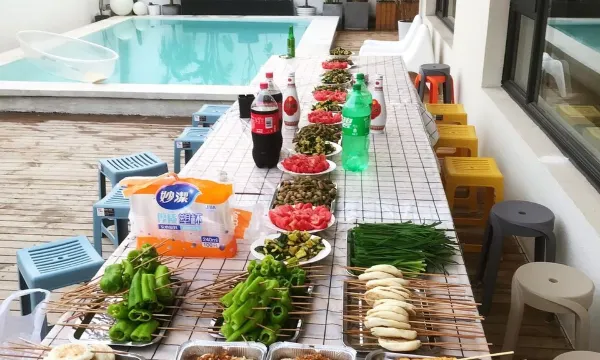 4人2猫入住 早晚温差比较大 早上现在短袖薄外套足够了 晚上我们开的空调 空调很暖和 自己带的烤串 服务也非常到位
