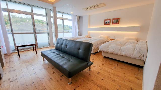 我们入住的是豪华双床间,房间非常干净。房间里有一张沙发,可以坐下大约三个人,而且房间空间很大,旁边还能轻松放下一个超大号的行李箱。我们预订的是两人间,但房间里却有三张床。我有点担心这些床是不是原本就装在那里的。
