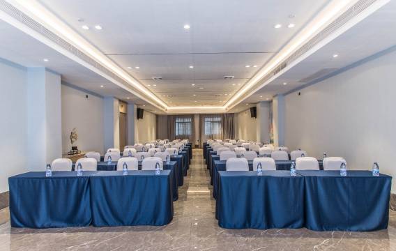 酒店有千兆WIFI全覆盖,刷抖音追剧不再等待;7F自助早餐厅(早餐30个品种:采用健康新鲜食材,纯牛奶、现榨豆浆、鲜榨果汁、吐司、西点、煎蛋、鸡蛋饼、热狗、热菜、什锦菜、小菜、凉菜、炒粉、炒饭、炒面、麻辣汤粉、骨头汤粉、包子、馒头、杂粮、水果沙拉等)。8F多功能厅无柱子会议室,全墙电子屏,课桌式100-120人。2F洗衣房:洗衣机(区分:男士、女士、儿童),独立烘干机(可速干),配备洗衣液、挂烫机、洗净篮、去毛器、去球器等,可提供:免费洗衣、烘衣、熨烫服务。2F健身房:跑步机2台、单车架1台、卧垫1套、 休闲沙发茶几1套。2-7F客房:小度扫脸进门/微信开门/智能卡开门、客房内全智能控制(可通过语音、手机、摁健均可控制:电视、空调、开关、照明、窗帘等),海信55寸高清电视(可手机投屏)、格力大1.5匹独立风管机冷暖双控空调、24小时高压泵秒出热水、活动式大功率吹风机、多控开关、床头双面手机(安卓/苹果)USB接口一拖三充电线、不间断电源插座、卫生间干湿三区分明,洗手台全面积自控化妆镜。客房均使用健康绿色环保材料,百圣· 西米德兰人体构造全弹床垫,千金宏帆高端亲肤床品,高品质洗漱套装及沐浴用品,让您释放睡眠因子,酣然入梦。免费配赠纯净水、一次性拖鞋、一次性洗漱用品、护理套装等。