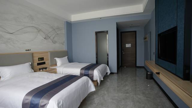 酒店配置:有各类豪华双床房、大床房、三人间、亲子房、主题房;所有房间均配备了高清大屏电视、独立高速WiFi,24小时热水、独立空调、干湿分离洗手间、独立吹风干发器、穿衣镜等设施。客房内采用高端舒适床垫和优质纯棉布草让您享受舒睡体验。大堂设有平价特产超市、房间内提供免费矿泉水,为你营造更便捷更舒适更安心的入住环境。住宿停车免费、提供专车接送服务(付费)让你出行更方便省心。