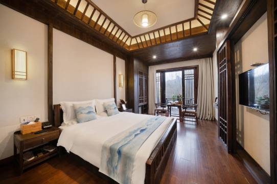刚到这儿,就被安静的小路、雅致的庭院和依山傍水的环境圈了粉。工作人员热情又礼貌,还帮我们把行李送进房间,特别周到。房间卫生干净,全屋木地板很显质感,开窗就是满眼好风景,空气也格外新鲜。坐在窗边茶台喝茶看景,这份惬意,真的让人不想离开。