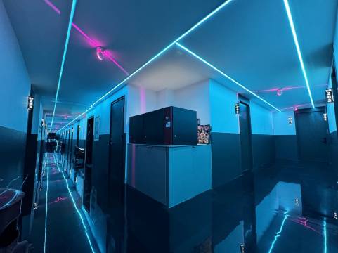 房间很大 电脑设施很好 适合开黑约会 房间干净整洁 交通便利 比较推荐的一家酒店 比去网吧以及普通酒店更划算 合适