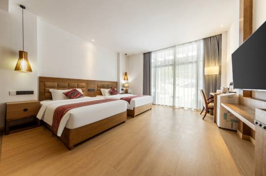 酒店装修质感很好,细节做得很到位。房间采光通透,通风不错,没有一点异味。智能设备一应俱全,智能电视、智能卫浴都配齐了,马桶还是恒温的,住着很舒服。网速稳定,追剧办公都不受影响。热水供应很快,洗漱用品品质在线。晚上休息很安逸,隔音不错,听不到外面的声音。躺在床上看看山景,放松又解压,游玩一天回来,休息得特别好。