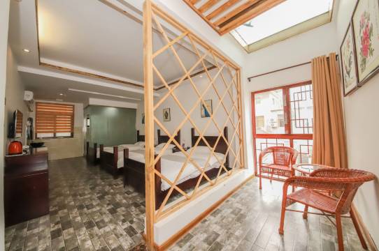 小院环境很美,门口很多绿植,房间设施齐全,干净整洁,两张1米五的床,睡四个人空间依然还很大。老板娘人美心善,孩子半夜呕吐,吐到被子上了,没有扣一分钱,还一直关心孩子健康,还帮忙收拾行李,还让提前入住,总之,非常推荐!