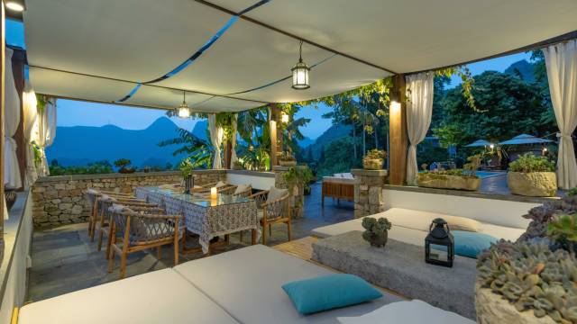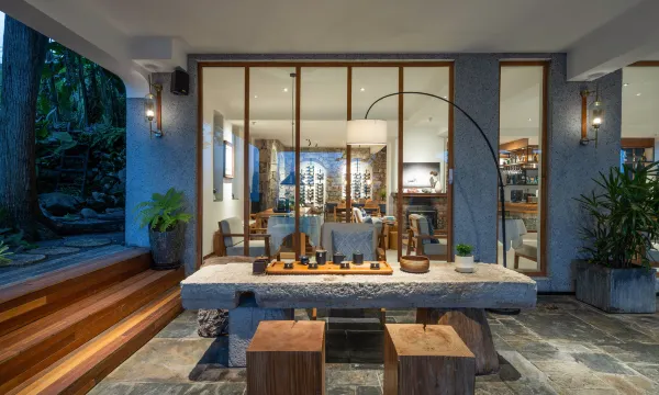 客栈位于万峰林景区内上纳灰村民宿隐在群峰之间,这里绿荫环绕、鸟鸣山幽,看雾云绕身。峰兮半山客栈融入了记忆中的味道,围一行竹栏,随意散漫。屋台青瓦,仰头就能望见天空,夜里灯火阑珊,是满天繁星作伴的宁静,可以将身体融进温暖的浴缸看落地窗外日出月落,也可以坐在无边泳池上让记忆流动。