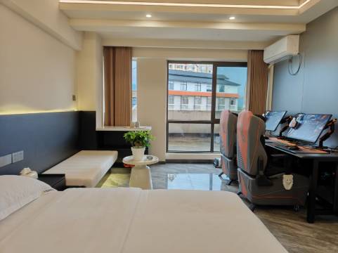 房间布局合理,电竞椅坐着舒服,久坐不累,还有舒适的床品,玩累了能好好休息。前台服务热情周到,办理入住快,有问题响应及时,还贴心准备了零食饮料。公共区域也很整洁,隔音效果不错,不会被打扰。
