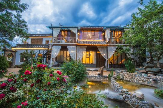 在这里有百年的地主老宅,也有清静的院落,院内百年古树成行,参天茂密,绿植遍地,小桥流水,四季花开不谢,还有形形色色丽江特有果树,每年的春天,酒店的院里百花争艳,五色绽放,花香弥漫,天堂美景未曾见过,九品堂的小天堂您值得体验。