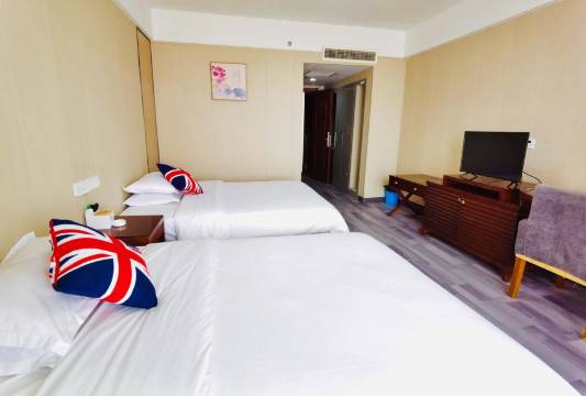 海阳途乐精品酒店环境优美, 阿里智能密码锁入住,方便安全,设施齐全房间采用小米智能设备, 位置奇佳,全新的装修风格,在床上便可欣赏180℃无敌海景,楼下就是知名的凤凰广场和万米金沙滩浴场正中心,紧邻丽达购物中心与餐饮一条街和星美影院,