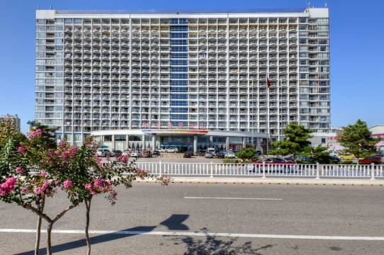 酒店就在海边,下楼就一两分钟走到海边,酒店有一个很大的停车场,坐在阳台欣赏大海,酒店旁边就有很多餐饮,不用担心吃饭问题。是度假,休闲的好地方。