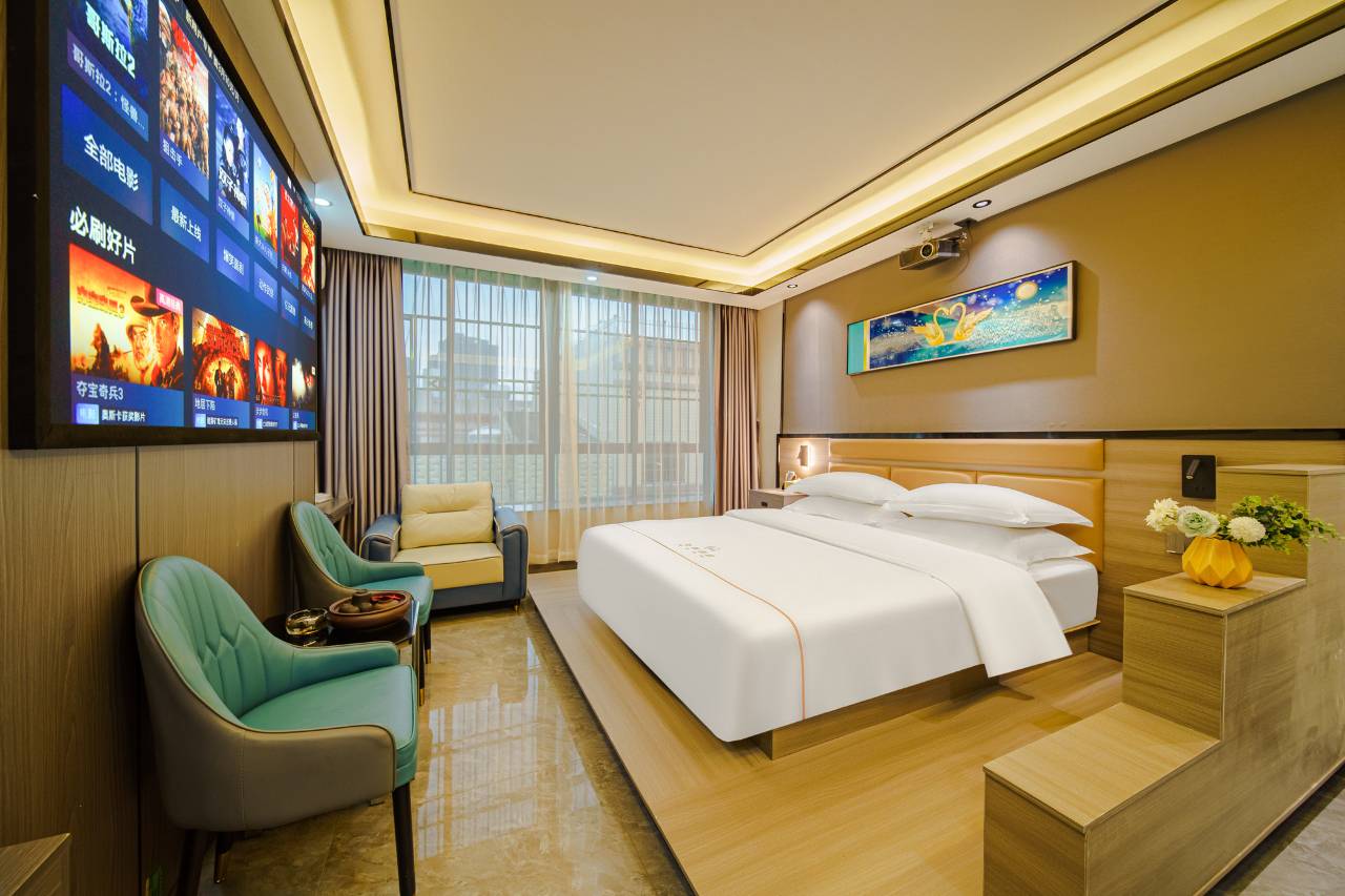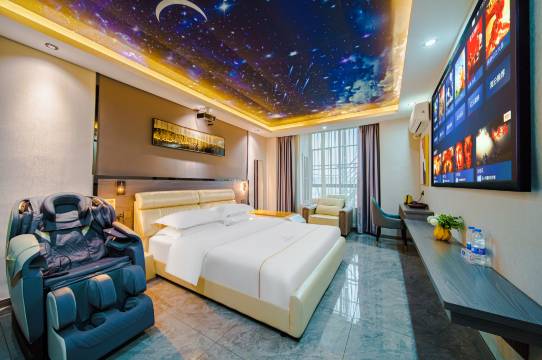 多次惠顾此店轻奢舒适,房间有免费的按摩椅躺上面看巨幕电影,双人大浴缸泡澡也很舒服,气性价比很高,停车方便老板随和前台服务员热情周到…值得推荐的好店![强]