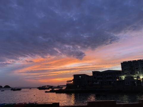 这次房间的位置好,正对着海,可以看太阳落下来。