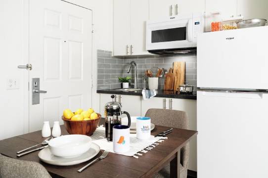 有 100 间空调客房提供厨房;您定能在旅途中找到家的舒适。带有有线频道的 43 英寸平板电视可满足您的娱乐需求;同时提供免费无线网络,方便您与朋友保持联系。便利设施包括书桌和夜床服务,以及带有免费市内通话的电话。