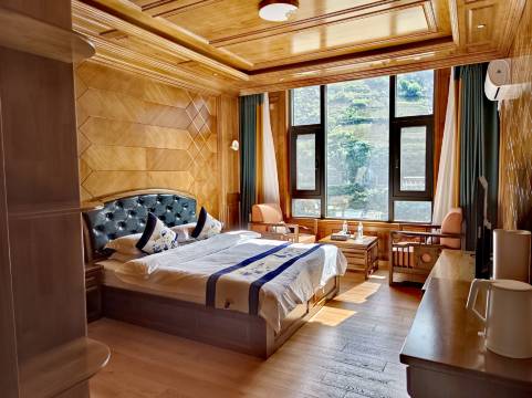 房间很宽敞,卫生、舒适,前面就是江景,楼下吃饭方便,味道很好,尤其是炖鸡,特别好吃。位置好找,停车方便,不错!