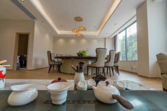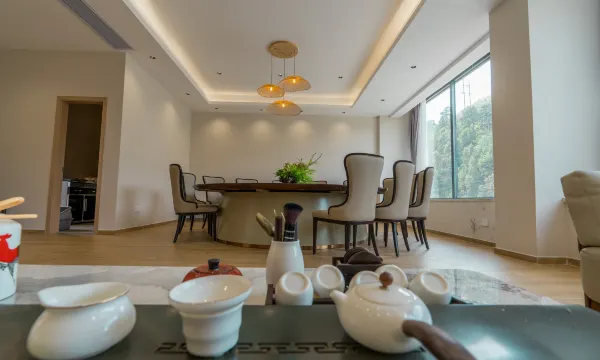 套房很大,就在河边,离滨河果园和李花谷都不是很远,有个天台可以聚餐、喝茶,房间干净舒适,值得推荐。